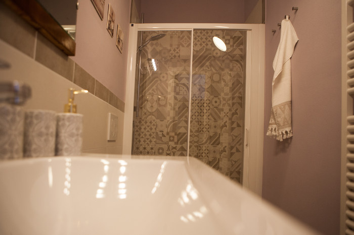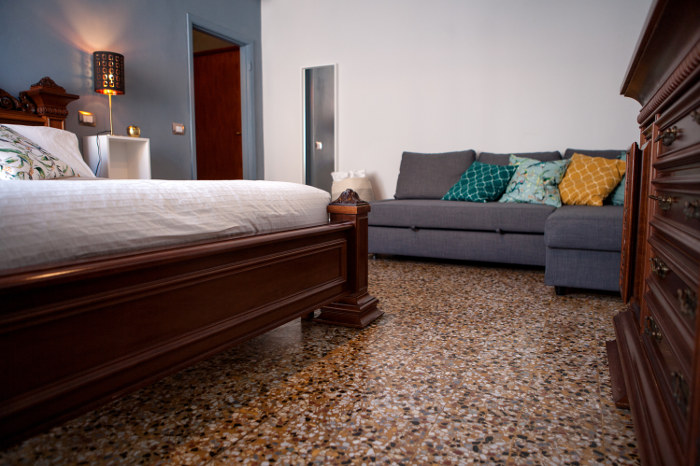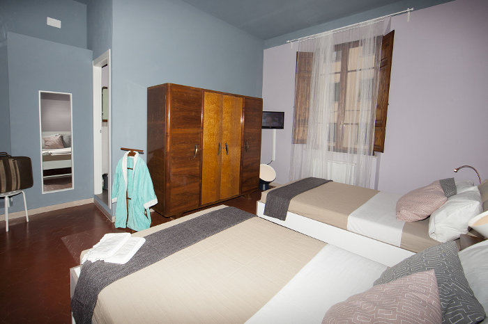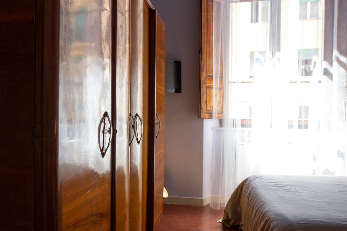 Ha 2 comodi letti alla francese, un bagno nato con la ristrutturazione. Perfetta per una famiglia o per chi cerca una stanza doppia extra large. È la camera più vecchia dell'appartamento ed ha ancora il pavimento in cementine esagonali originali.