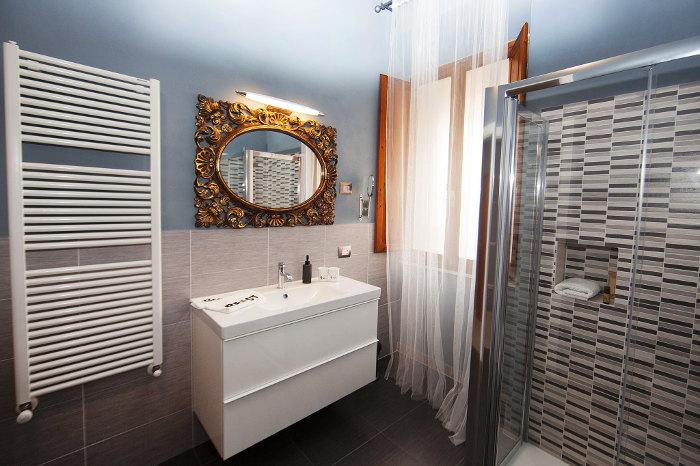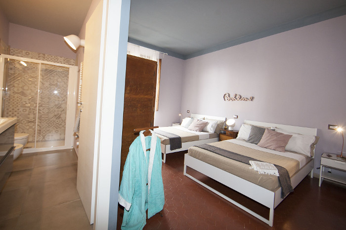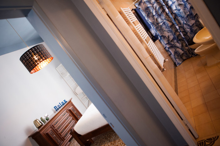 In passato ospitava un salotto ed era il vero fulcro della casa; qui è dove la nostra famiglia era solita guardare la TV ed è per questo che l'abbiamo denominata "Alla televisione". E` la camera più piccola del B&B ma sicuramente la più graziosa nonché l'unica con vista mare. Ha un letto alla francese da 140 cm ed è dotata di smart TV. Il bagno è nato con la ristrutturazione.