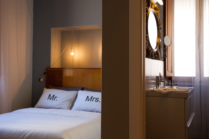 Nasce dall'unione di 2 stanze adiacenti. La camera da letto ha un rigoroso letto matrimoniale degli anni 40 con il suo cassettone. Il bagno è nato con la ristrutturazione. La camera si chiama "Lei & Lui", ma sono assolutamente benvenuti "Lui & Lui", "Lei & Lei", "solo lui", "solo lei"ed è inoltre trasformabile in doppia.